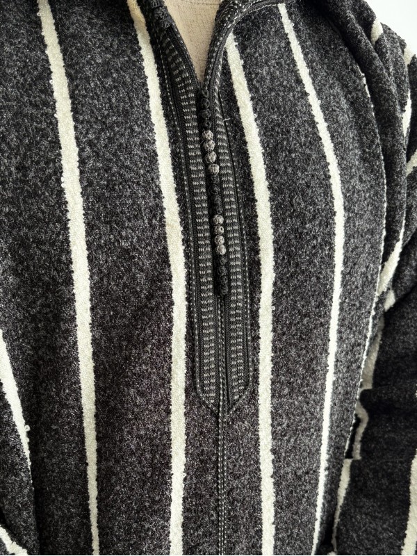 Ouazzania Moroccan Djellaba iarnă - Negru cu dungi
