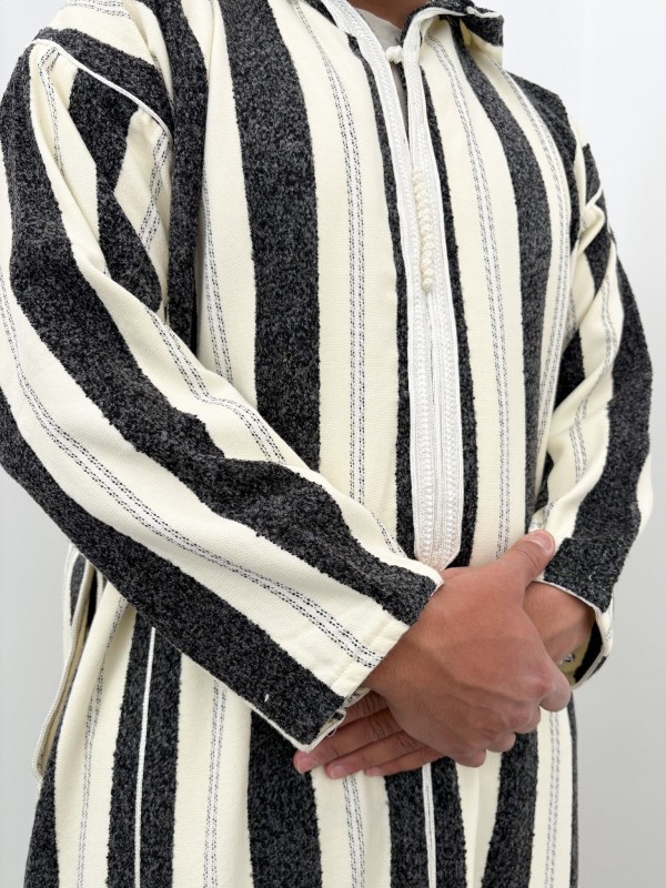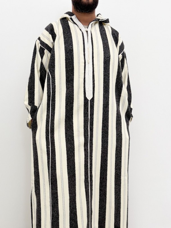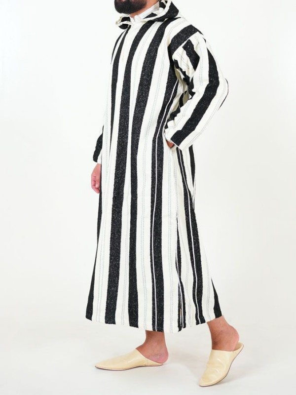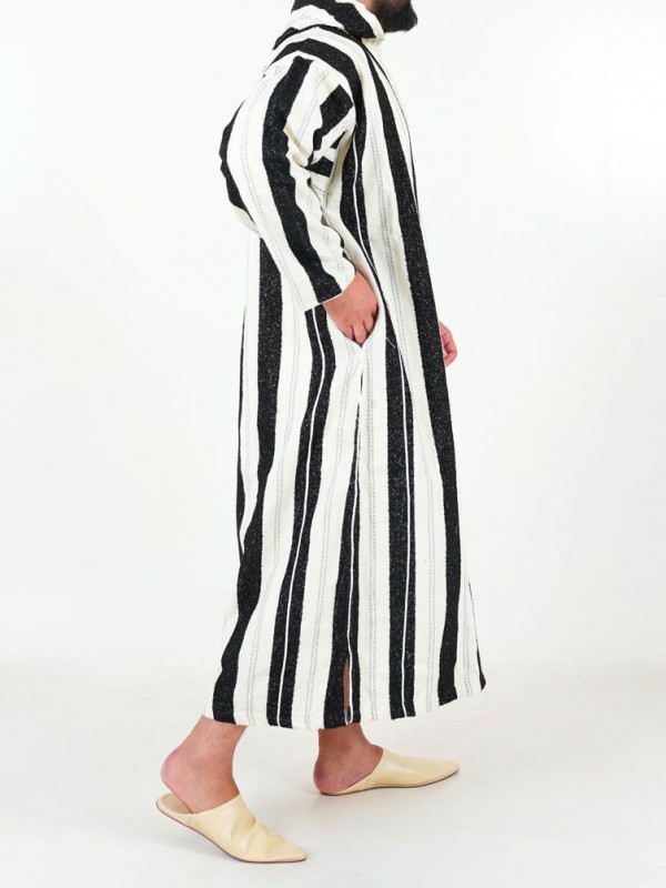 Ouazzania Djellaba marocană cu dungi - Alb/negru