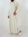 Ouazzania Djellaba marocană cu dungi - Alb/taupă
