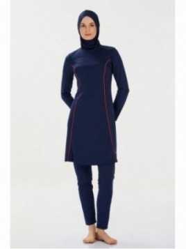 Burkini din lycra albastru miezul nopții cu bordură roz 9021