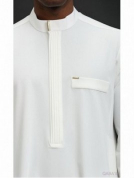 Bey lung Qamis Marca Qabail Material polivizcoză (bumbac cu elastan) Placă aurie pe guler și pe buzunarul de la piept Finisaj elegant