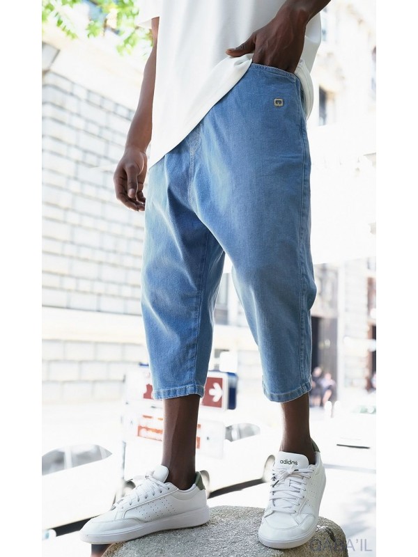 Bermude din denim stretch albastru deschis 5211 - Qabail