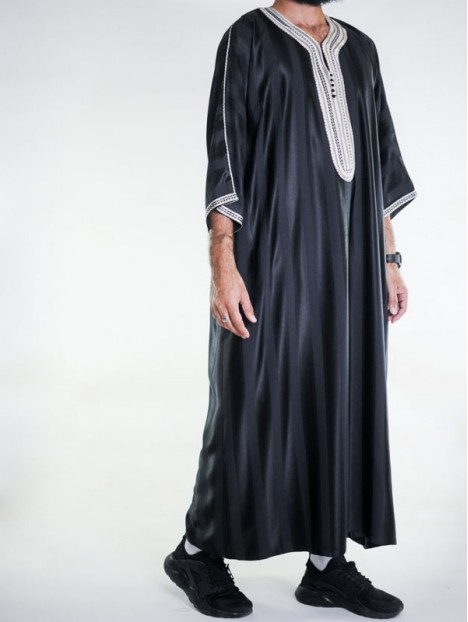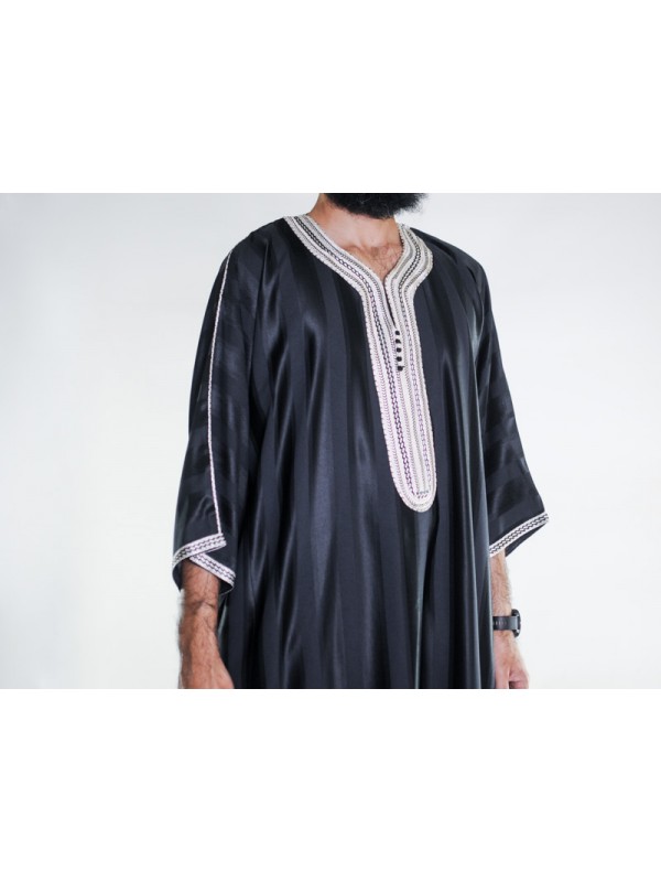 Gandoura Jawhara marocană - negru / broderie albă