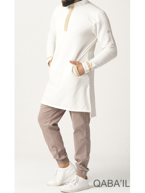 Eminență scurtă Qamis - Ecru cu broderie aurie - Qabail