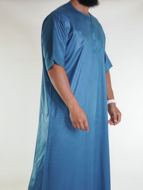 Emirati Qamis mâneci scurte Albastru verde - Satin