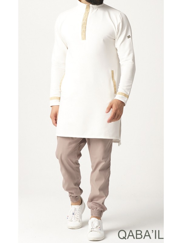 Eminens kort Qamis - Ecru med guldbrodyr - Qabail