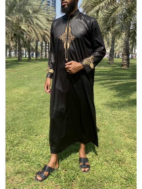 Qamis Aylan Svart - Broderi - Satin
